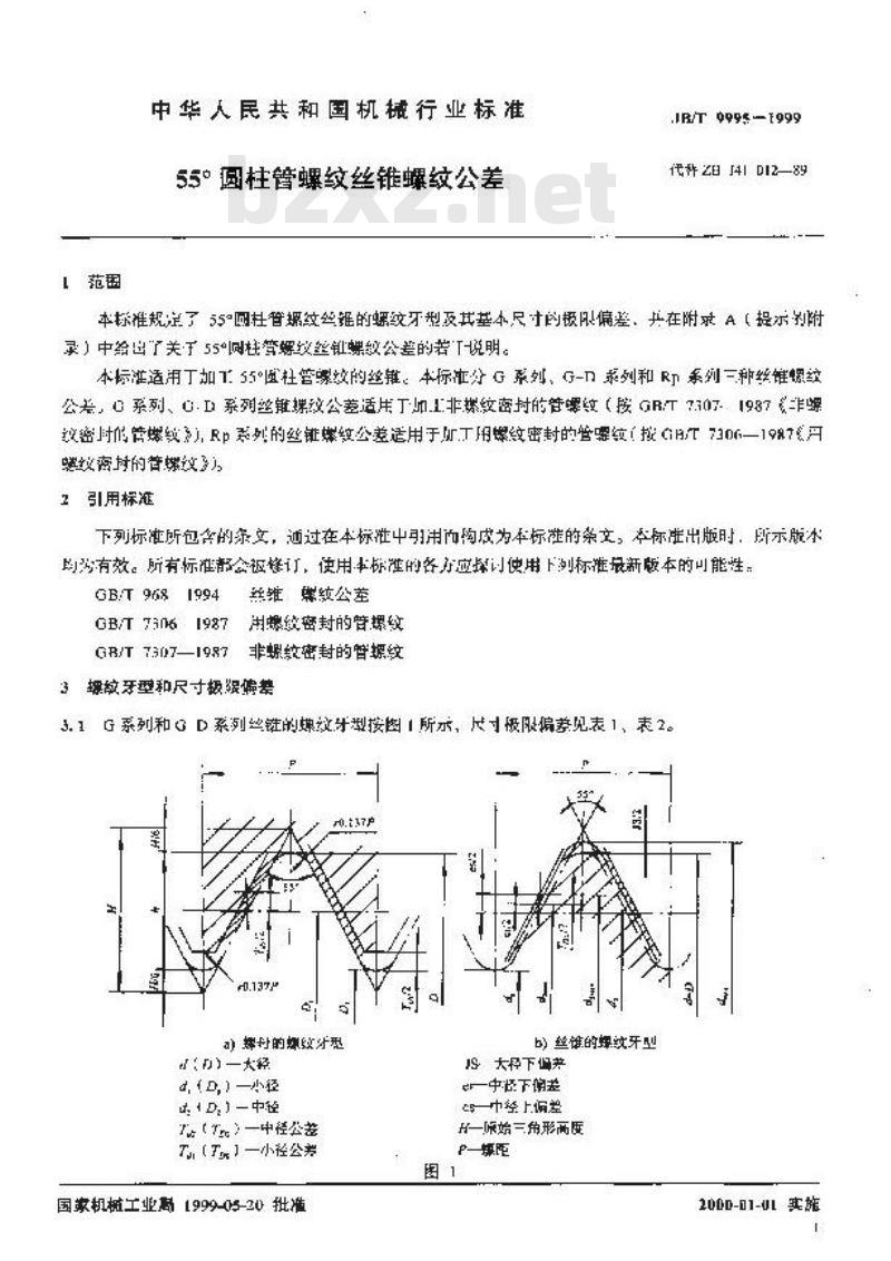 本标准规定了55°厕柱管纹丝维的螺纹牙型及其基4尺寸的极限偏整、共在附求A(提示剂附录)中给出了关于55°同柱管竭纹丝链螺敏公差的若T说明。本标准适用加工55°匠社管累纹的丝辑。本标准分G系划、G-系列和RF系列三种丝雄螺纹公差,心系列、心.L系列丝维操纹公差适用丁加.1非势纹密封能管课纹(接GR/T7.307-1987非螺效密时管爆纹3R处的丝燃纹公差适用于用爆纹密封的管需纹!按H7306一1987月婴纹密持的管操纹》)