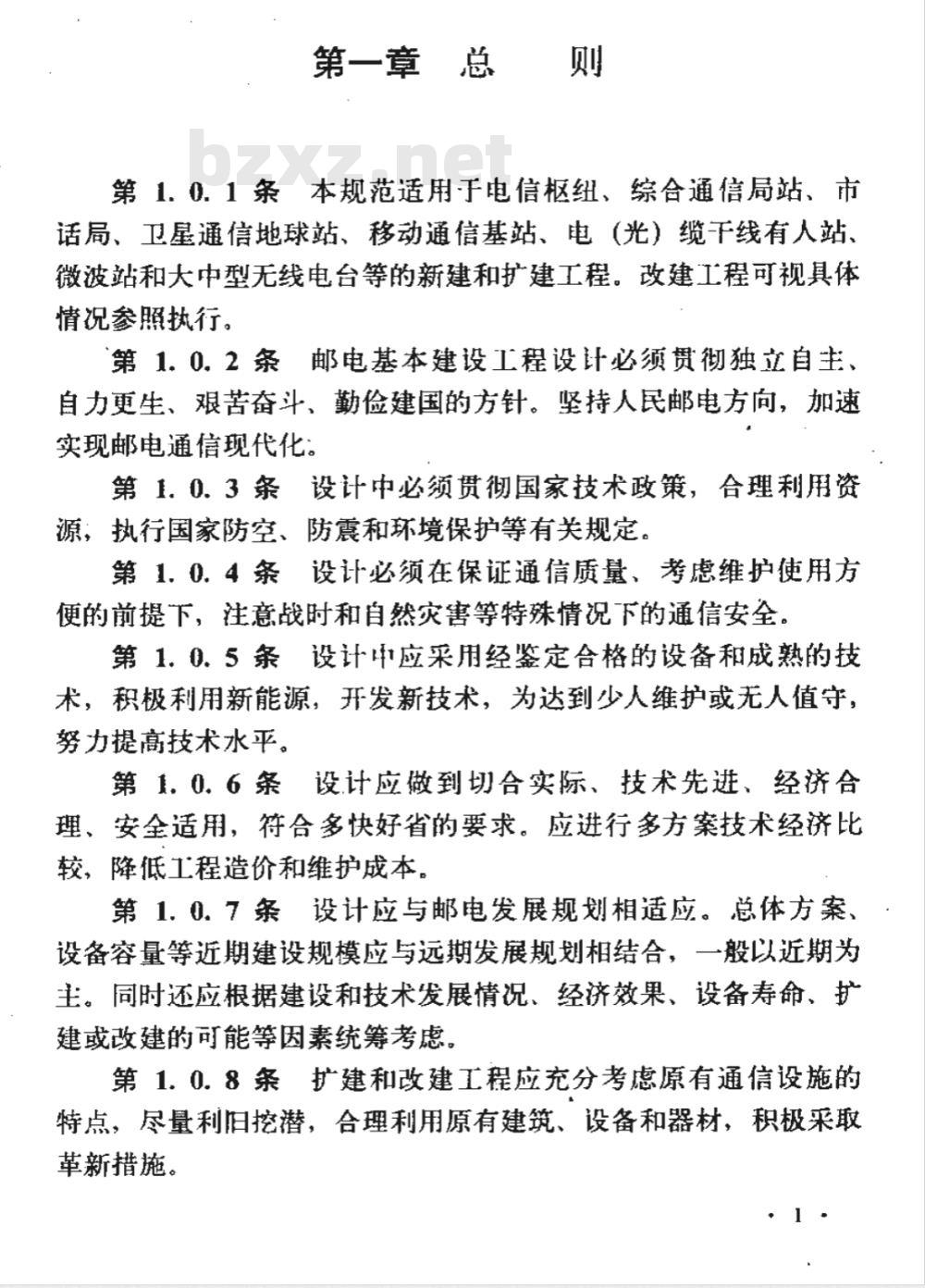 第1.0.3条设计中必须贯彻国家技术政策,合理利用资源,执行国家防空、防震和环境保护等有关规定。第1.0.4条设计必须在保证通信质量、考虑维护使用方便的前提下,注意战时和自然灾害等特殊情况下的通信安全。第1.0.5条设计应采用经鉴定合格的设备和成熟的技术,积极利用新能源,开发新技术,为达到少人维护或无人值守,努力提高技术水平。