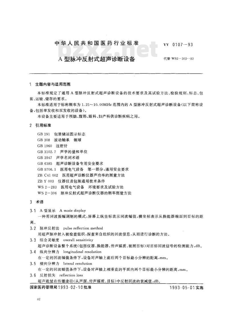 - YY 0107-1993 A型脉冲反射式超声诊断设备