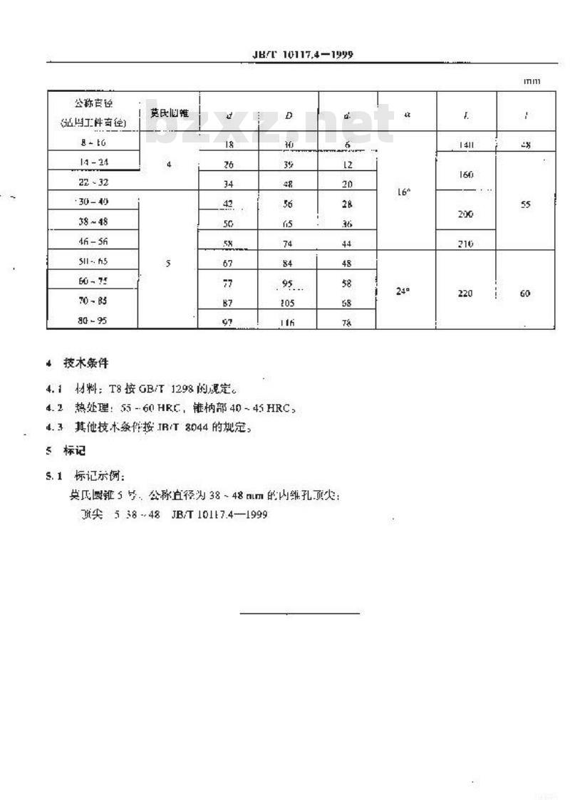 4.2热处理:55-60HRC,锥柄部40-45HRC,4.3其他技术条件按.IR/T8044的规定,5标记