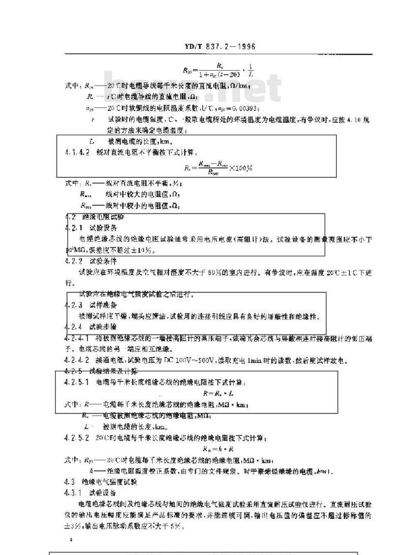 4. 1. 4. 1 温度 20 心时电继导线每干米长度的直流电阻接下式计算,中华人民共和国邮电部1996-04-04 批准1996-09-01实施