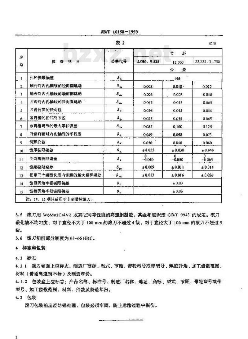 - JB/T 10158-1999 带轮和带模滚刀 技术条件