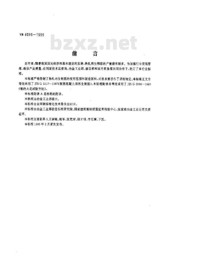 本标准严格限制了热轧再生钢筋的使用范围利制造原料,对技术要求作了详细规定。本标准正文非等效采用了JISG3117—1987钢筋混凝土用再生钢筋》,本标准附录非等效采用了JISG0566—1980&钢的火花试验方法》。