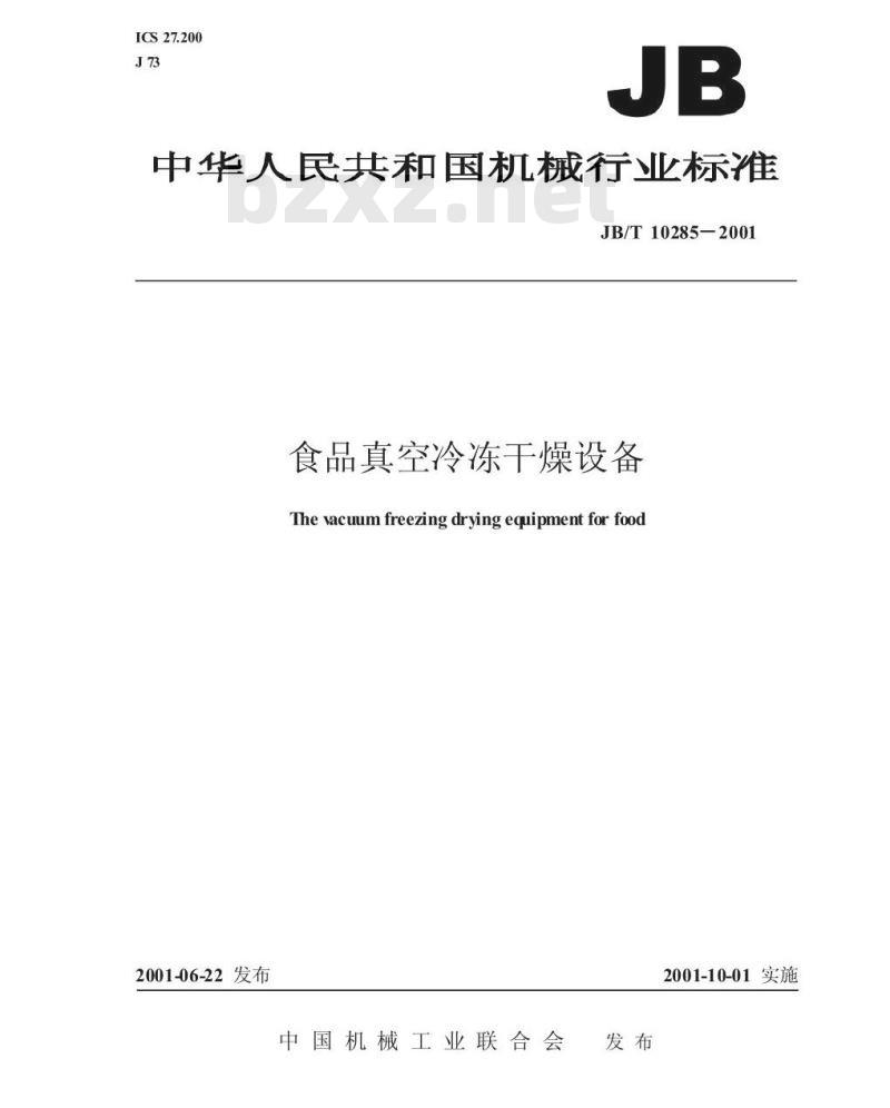- JB/T 10285-2001 食品真空冷冻干燥设备