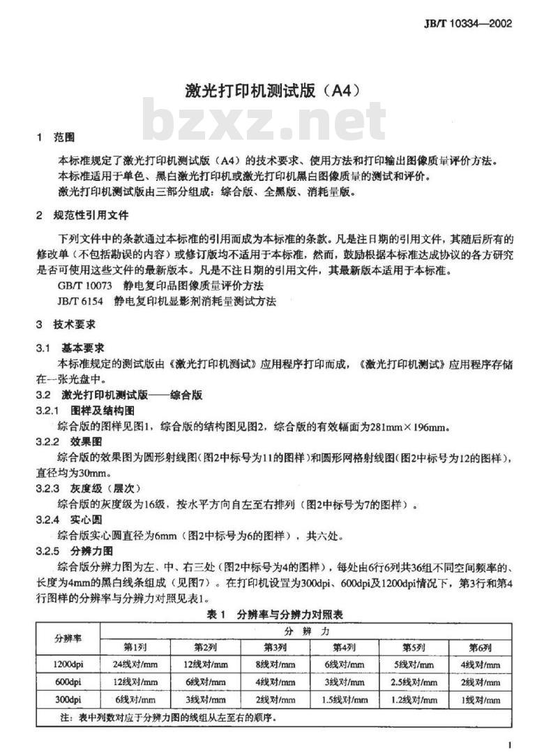 - JB/T 10334-2002 激光打印机测试版(A4)