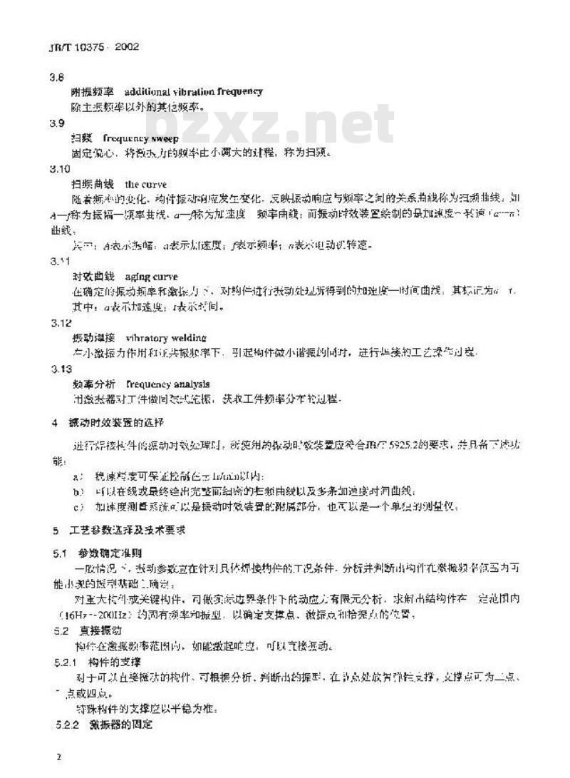 本标准规定了焊接构件振动时效工艺参数选择、技术要求和振动时效效果的评定方法。 JB/T 10375-2002 焊接构件振动时效工艺 参数选 JB/T10375-2002