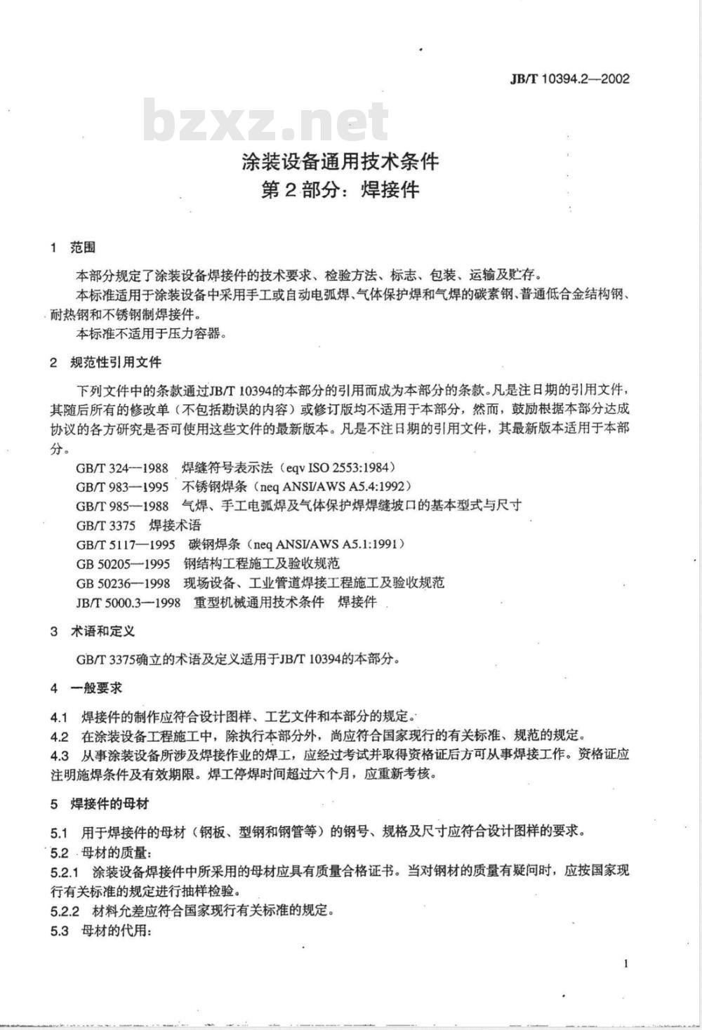 - JB/T 10394.2-2002 涂装设备通用技术条件 第2部分:焊接件