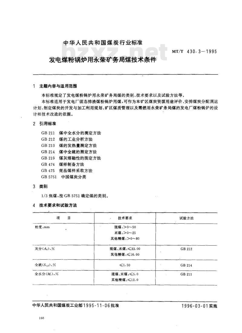 - MT/T 430.3-1995 发电煤粉锅炉用永荣矿务局煤技术条件