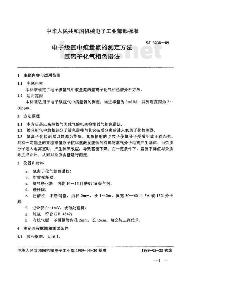 - SJ 3238-1989 电子级氩中痕量氮的测定方法 氩离子化气相色谱法