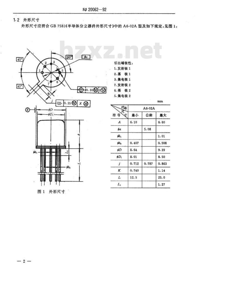 外形尺寸应符合GB7581《半导体分立器件外形尺寸》中的A6-02A型及如下规定,见图1:45°