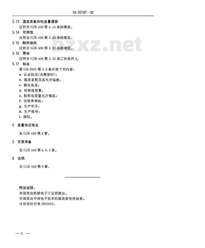 - SJ 20197-1992 CCK405型有可靠性指标的瓷介固定电容器详细规范