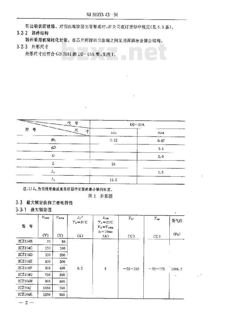 注:1)L,为引线弯曲成直角后器件安装的最小轴向长度。图1外形图bzxz.net