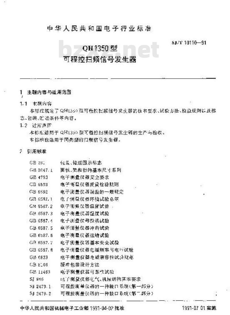 - SJ/T 10110-1991 QH1350型可程控扫频信号发生器