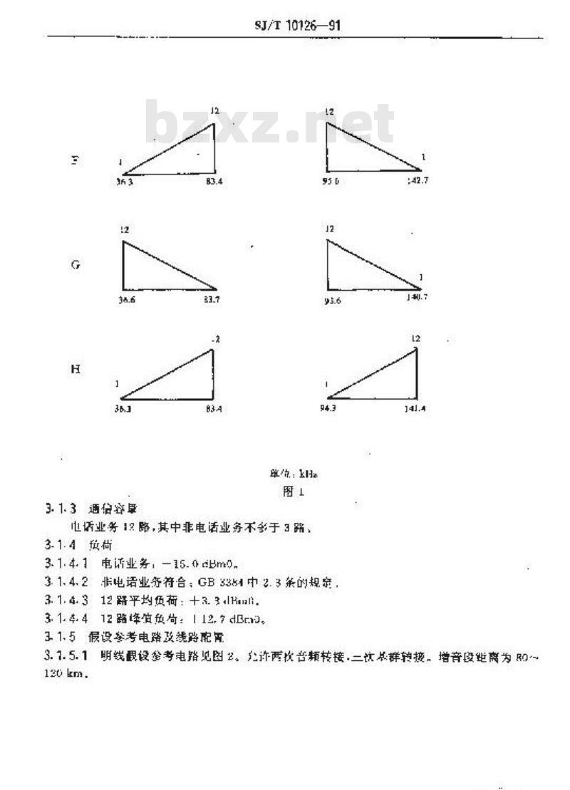 3.1.4.2非电培业务符合;GB3384中2.3条的规亲,3.1.4.312路平均色荷:+3.3/Hmll.3.1.4.412路峰值鱼荷:「12.7dBr。3.1.5假设零考电踏及裁跨配