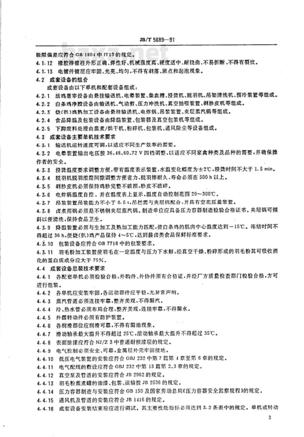 - JB/T 5689-1991 烧鸡加工成套设备 技术条件