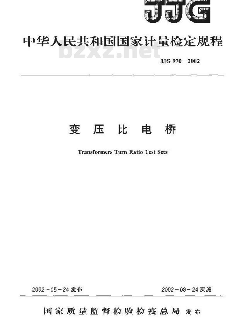 JJG 970-2002 变压比电桥检定规程 JJG970-2002