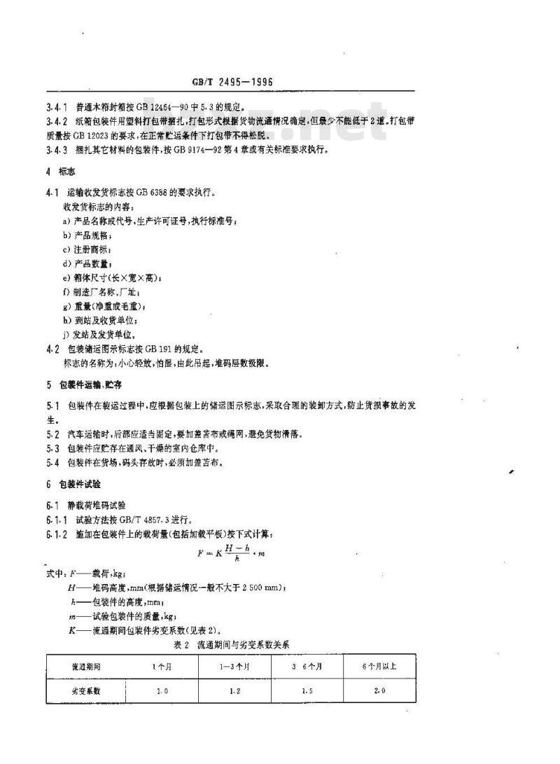 K——流通期间包装件劣变系数(见表 2)。表2流通期间与劣变系数关系