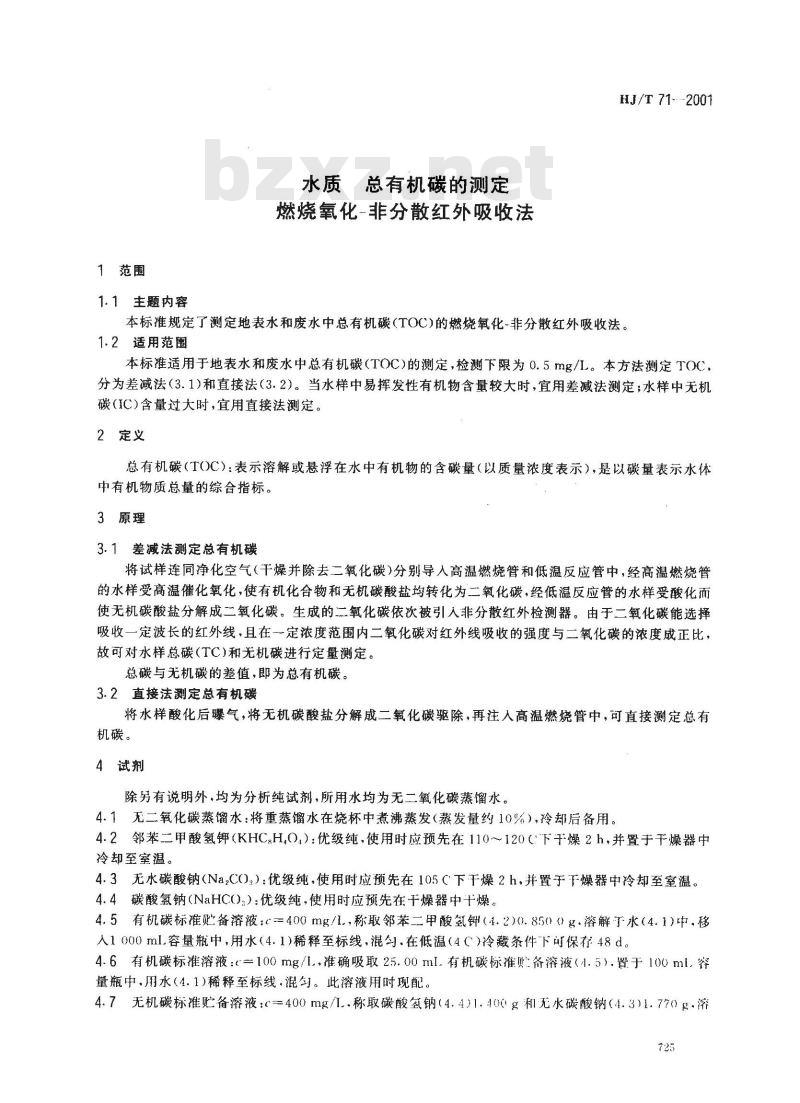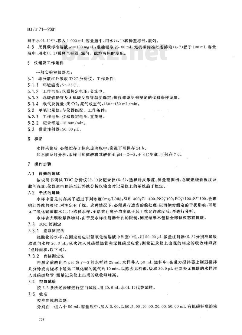 - HJ/T 71-2001 水质 总有机碳的测定 燃烧氧化-非分散红外吸收法