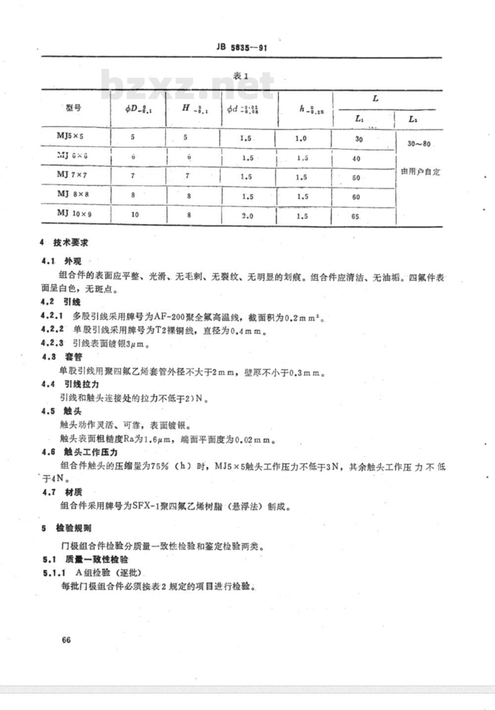 组合件采用牌号为SFX-1聚四氟乙烯树脂(悬浮法)制成。5检验规则