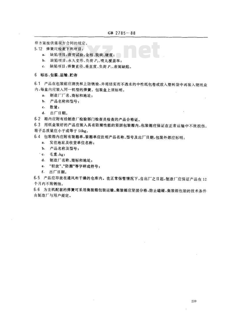 缺陷璜目:弹簧直径、垂直度、负荷P,、表面缺陷。6 标志、包装、运输、购存