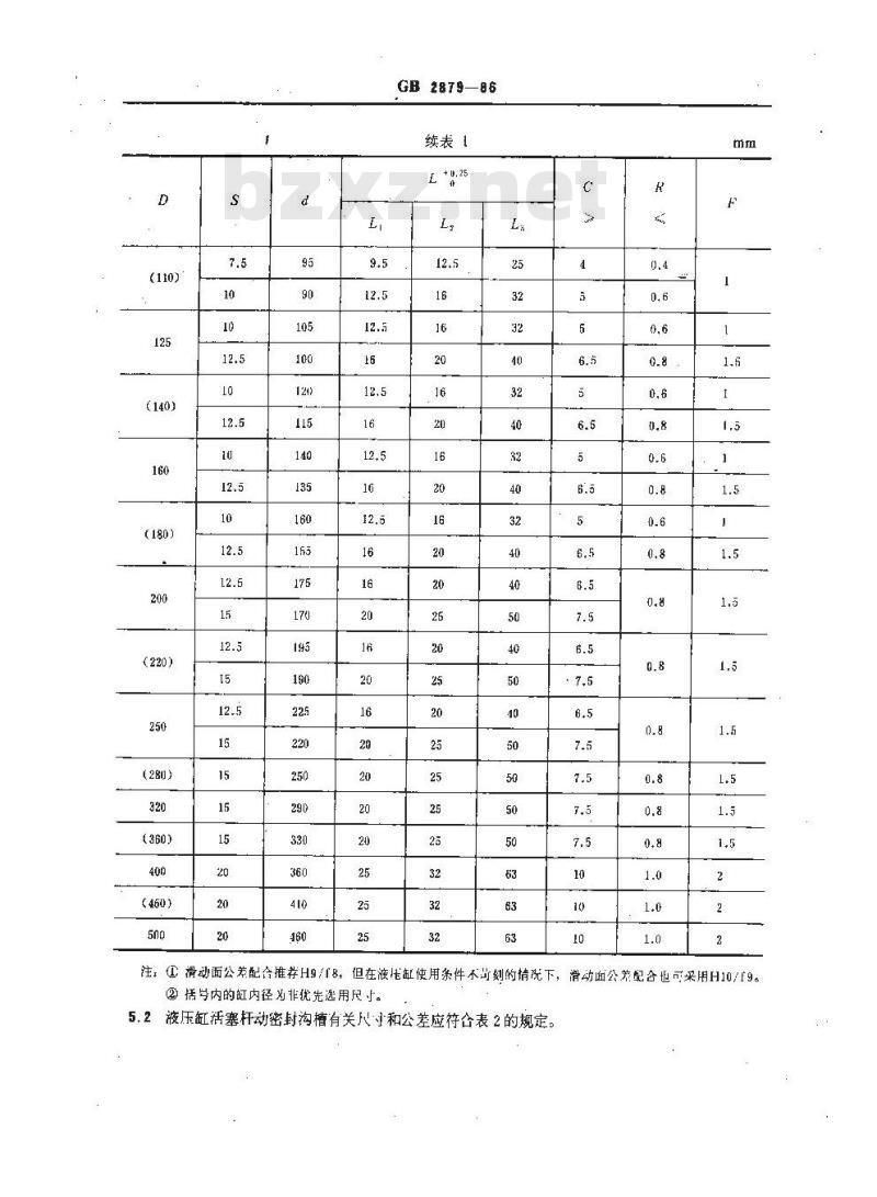 注:滑动面公差配合推存H9/T8,但在波压缸使用条件不齿刻的情况下,滑动南公差配合也可以采用H10/19。GB 2878—86