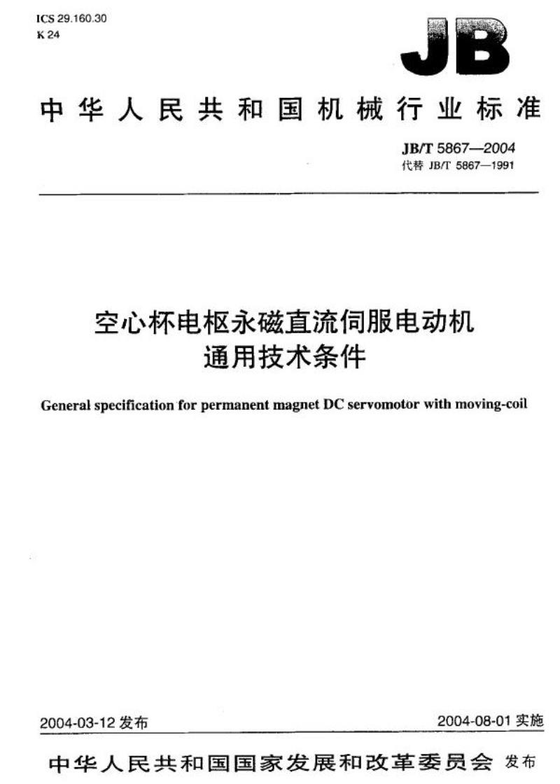 - JB/T 5867-2004 空心杯电枢永磁直流伺服电动机 通用技术条件