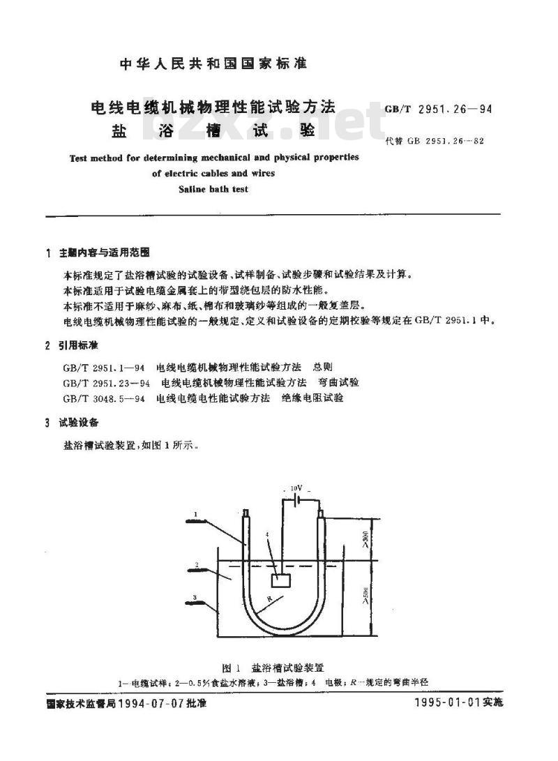 - GB/T 2951.26-1994 电线电缆机械物理性能试验方法 盐浴槽试验
