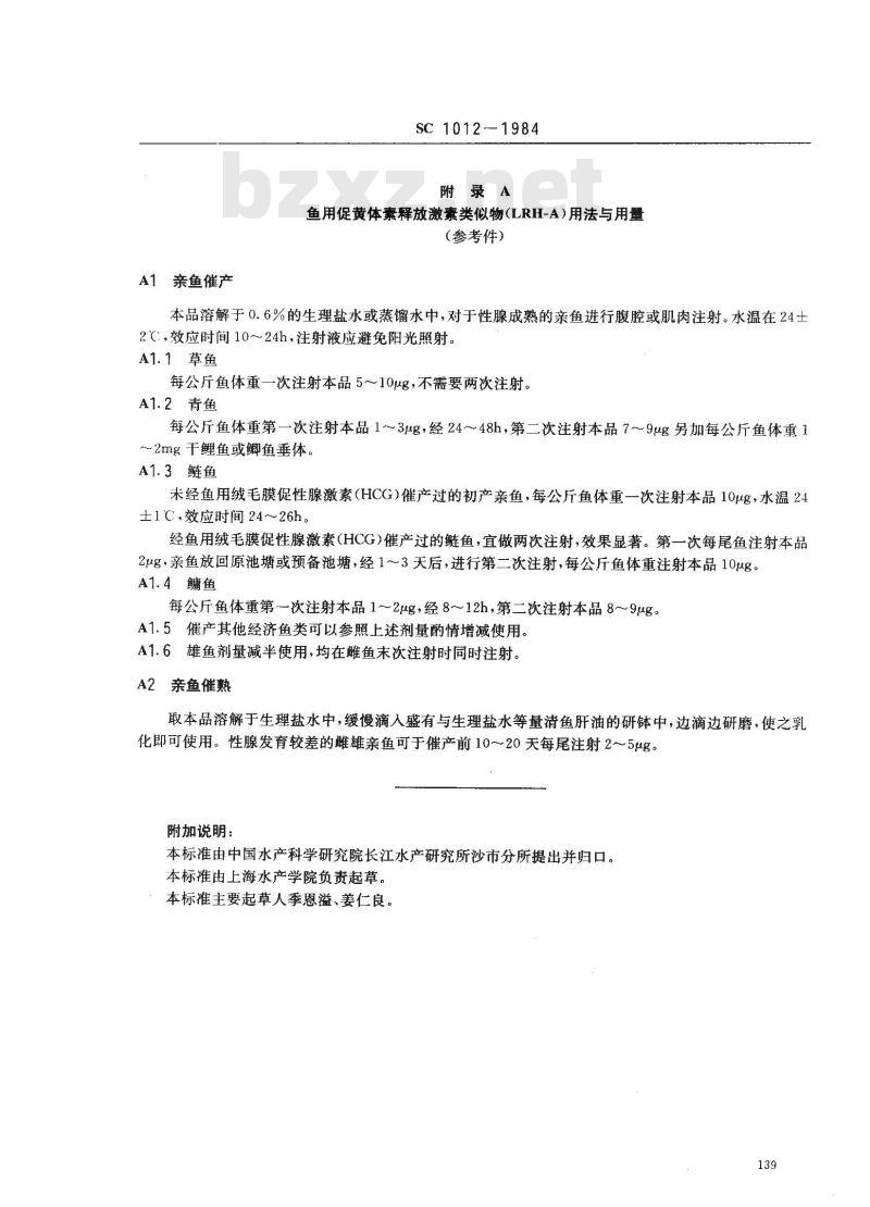 本标准由中国水产科学研究院长江水产研究所沙市分所提出并归口。本标准由上海水产学院负责起草。本标准主要起草人季恩溢、姜仁良。139