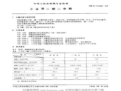 HG/T 3874-2006.Trioctyl trimellitate. 1范围 HG/T 3874规定了偏苯三酸三辛酯(简称TOTM)的要求、试验方法、检验规则、标志、包装、运输和贮存。 HG/T 3874适用于以偏苯三酸酐与2-乙基己醇经酯化法制得的偏苯三酸三辛酯。 相对分子质量:546.78