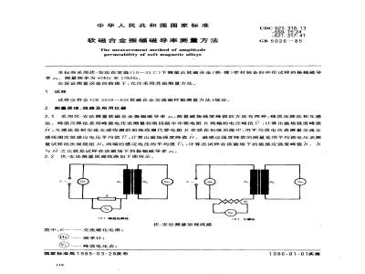 本标准规定了用单片磁导计测量电工钢片(带)的比总损耗、比视在功率和交流磁化曲线的方法。本标准规定电工钢片(带)的交流磁性能参数都是在磁通波形正弦条件下测得的,适用的磁极化强度范围为:冷轧取向电工钢片(带)1.0~1.8T,冷轧无取向和热轧电工钢片0.8~1.5T,如果磁通正弦条件得到保证此范围可相应