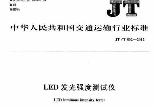 JT/T 832-2012 LED luminous intensity tester. 1范围 JT/T 832规定了LED发光强度测试仪的术语和定义、结构与分类技术要求.试验方法检验规则以及标志、包装、运输和储存。 JT/T 832适用于单管LED器件发光强度测试仪产品。 2规范性引用文件 下列