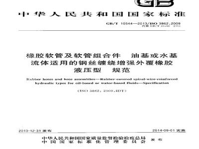 橡胶软管及软管组合件 油基或水基流体适用的钢丝缠绕增强外覆橡胶液压型 规范