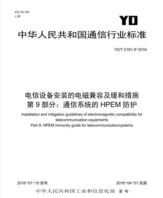 电信设备安装的电磁兼容及缓和措施 第9部分:通信系统的 HPEM 防护