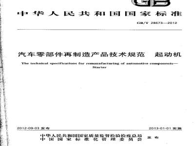 进口再制造用途机电产品检验技术要求第3部分:汽车起动机、发电机
