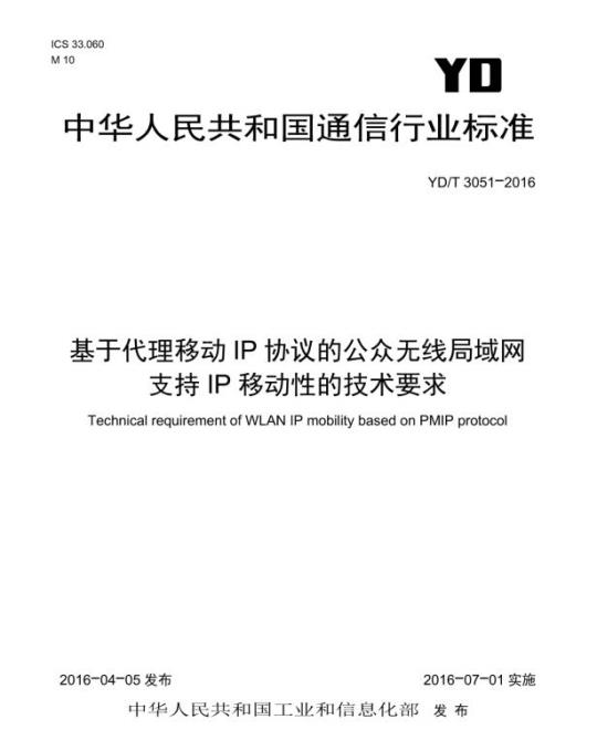 基于代理移动 IP 协议的公众无线局域网支持 IP 移动性的技术要求