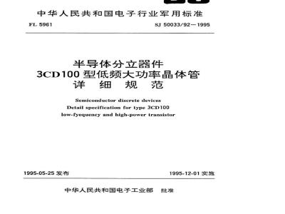 半导体分立器件3CD100型低频大功率晶体管详细规范