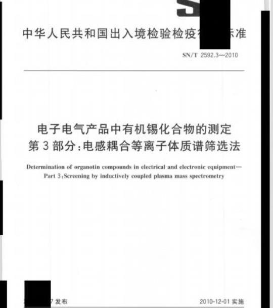电子电气产品中有机锡化合物的测定 第3部分:电感耦合等离子体质谱筛选法