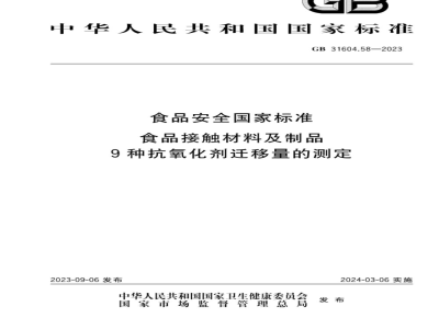 本标准规定了食品接触材料及制品9种抗氧化剂迁移量的测定方法。 本标准适用于塑料、橡胶、涂料和涂层、黏合剂、油墨以及纸和纸板类食品接触材料及制品9种抗氧化剂2246、抗氧化剂264、丁基羟基?香醚(BHA)、2,4-二叔丁基苯酚、抗氧化剂425、抗氧化剂300、抗氧化剂1010、抗氧化剂1076、抗氧