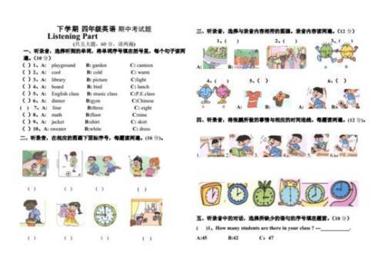 关于小学英语四年级下学期期中测试题的文档。   ……(阅读全文)