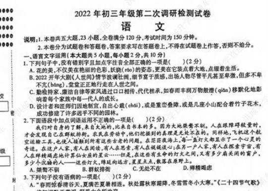 (二)语文试卷学校班级姓名教育ID号.本试卷共12页,共五道大题,24道小题满分100分考试时间150分钟.在试卷和答题卡上准确填写学校名称、班级、姓名和教育ID号.试题答案一律填涂或书写在答题卡上,在试卷上作答无效.在答题卡上,选择题和第24题前的方框必须用2B铅笔填涂,其他试题用黑色字迹签字笔作答.考试结束,请将答题卡交回