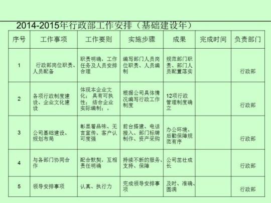 我们特别为读者整理了“公司行政人员年终工作计划”这篇文章,确保质量过硬。为了提高工作满意度,我们需要更加精密地管理后续的工作流程。因此,我们需要全身心投入到工作计划的制定过程中去。简单地说,工作计划就是把自己的工作内容提前安排好,并用书面文件予以记录。以上内容相信对您有所帮助!