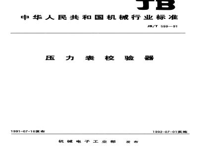 JB/T 599-1991 Pressure gauge calibrator JB/T599-1991 standard download and decompression password: www.bzxz.net