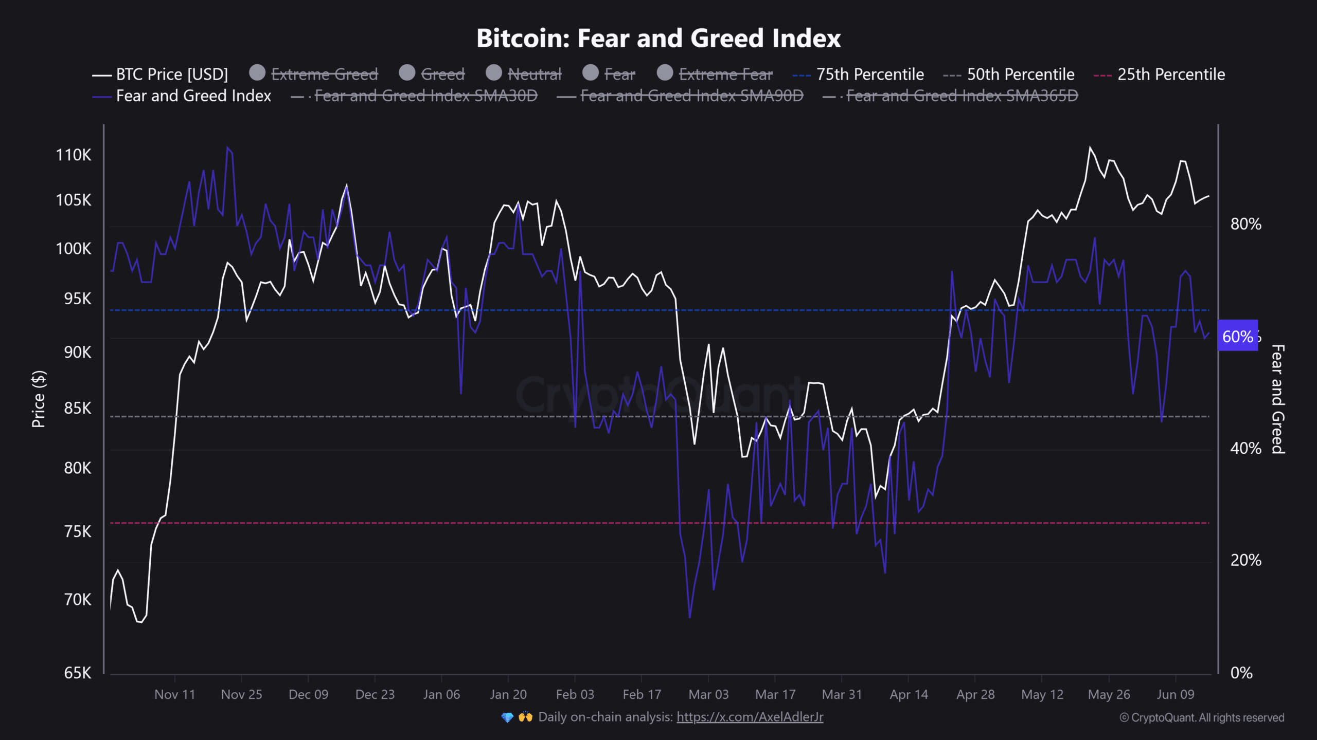 相较于上周62的"贪婪指数"和五月78的"极度贪婪"值,当前情绪指标已回调至60。