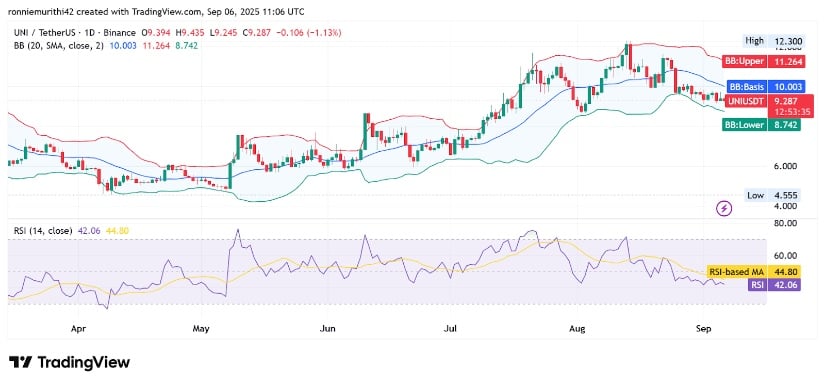 截至撰稿时,UNI报价9.26美元,较日内高点9.43美元承受温和压力。RSI指标41.88显示动能减弱但未达超卖,暗示市场保持谨慎态度,若条件改善仍存渐进复苏空间。