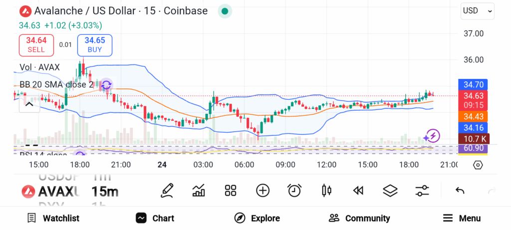 现价34.44美元的AVAX获得重磅机构支持。AgriFORCE Growing Systems宣布全面转型为AVAX One,成为首家专注Avalanche生态的纳斯达克上市公司。其计划募集5.5亿美元用于收购AVAX代币,将直接形成买盘压力。