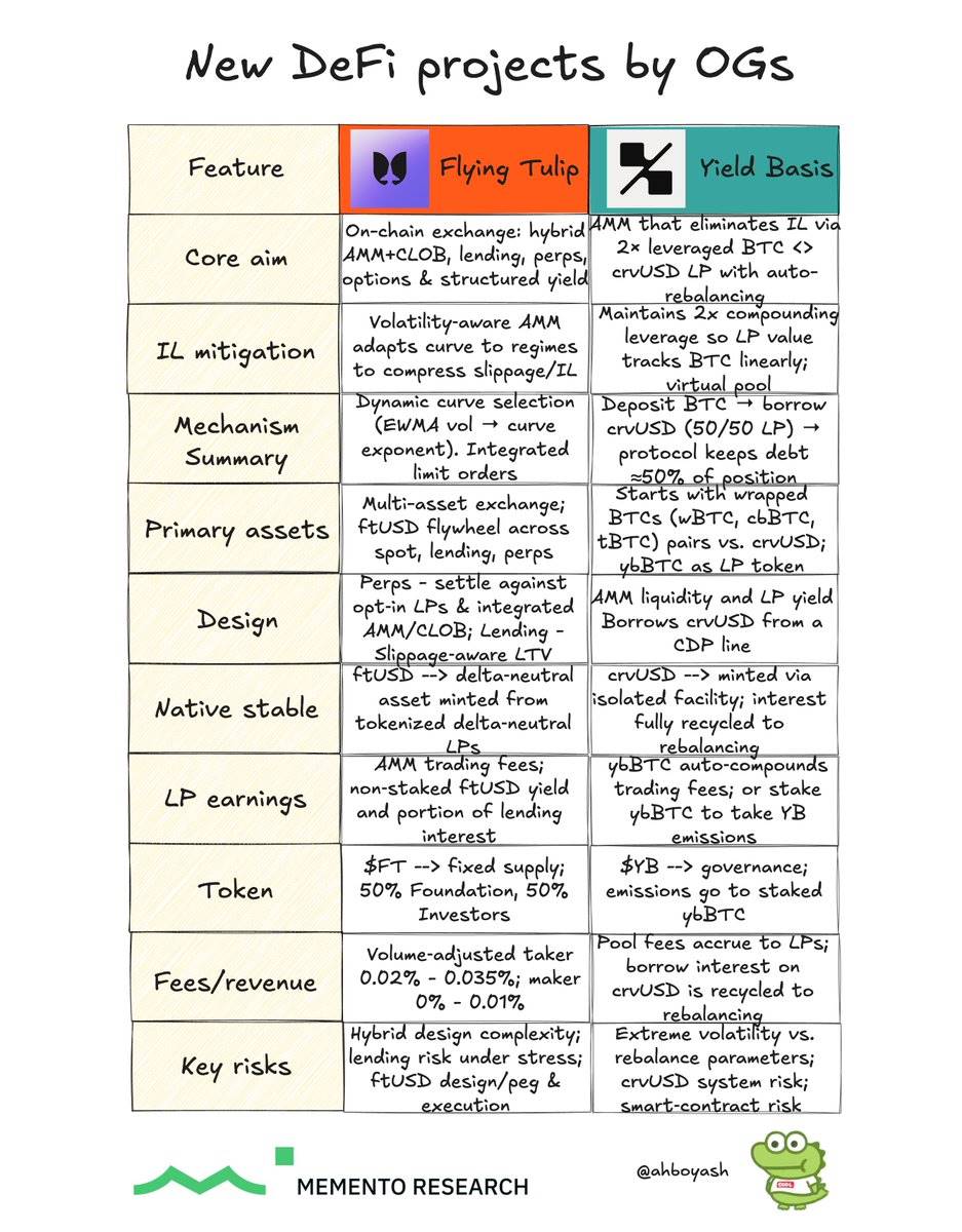 Yield Basis 希望成为 BTC 流动性的平台;而 Flying Tulip 则致力于成为所有链上原生交易的平台。在当前永续合约去中心化交易所(Perp DEX)为主流的时代,Flying Tulip 的推出显得恰逢其时。坦白说,如果能带来最佳执行效果,Flying Tulip 甚至可以将未来的 BTC 流量引流至类似 YB 的资金池。如果 Yield Basis 成功实现,ybBTC 可能成为比特币的「stETH」原语:BTC 敞口 + 流动性提供者 (LP) 交易费,且没有无常损失。Flying Tulip 有潜力推出其整合堆叠,让用户获得中心化交易所 (CEX) 级别的工具;尝试「一站式交易,覆盖所有 DeFi」。儘管对这两个项目保持谨慎乐观态度,但不可忽视的是,这些元老级创始人和顶级团队的项目仍未经过测试,而且创始人还需兼顾其他协议(如 Curve 和 Sonic)的发展。