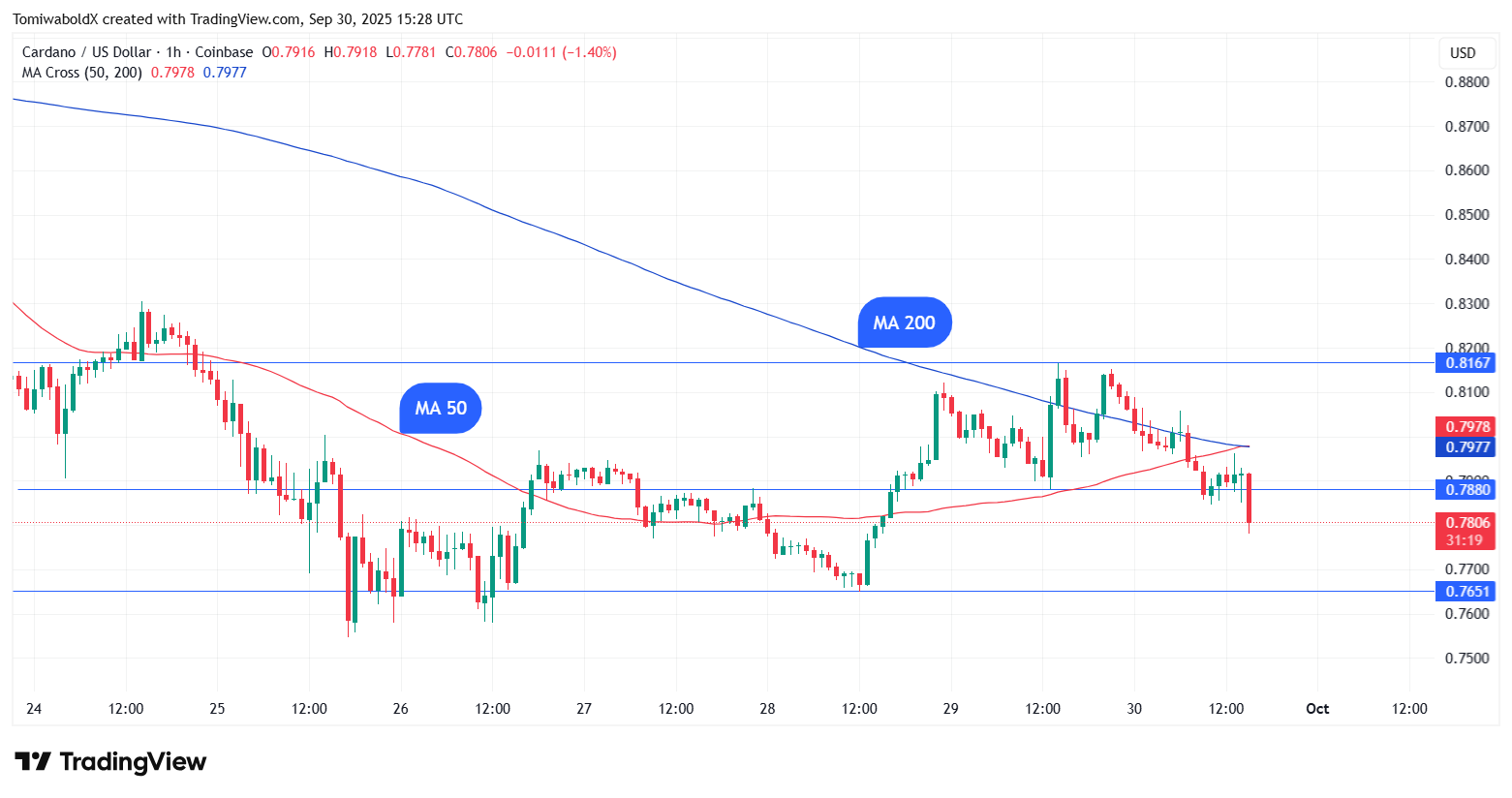 截至发稿,卡尔达诺(ADA)24小时跌幅3.09%,周线下跌4.44%,整个加密市场在九月收官日普遍承压。