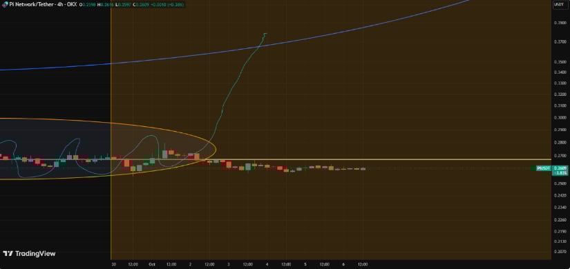 从当前水平反弹35%将推动PI触及0.286美元和0.340美元的初期复苏目标。若买盘压力增强,价格可能上探0.360美元,彻底修复九月崩盘的跌幅。
