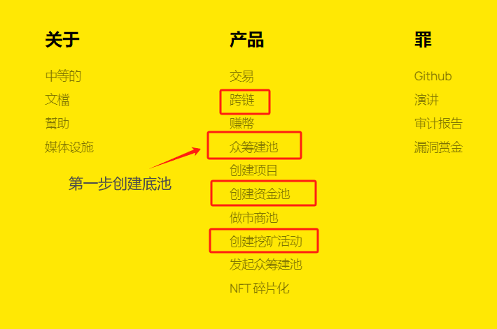 一:进入DODO官网以后,在官网底部找到 “众筹建池”进入页面