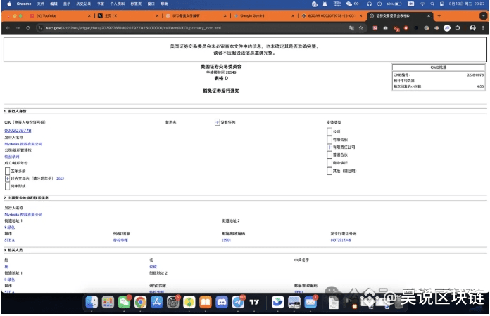 【写在前面】 近期,一家名为 Mystonks 的 “美股上链” 平台因冻结用户资金而引发广泛争议。据了解,该平台以 “用户资金来源不合规” 为由扣留了大量资产。 从金融合规的角度看,这种处理方式是极不寻常的。一家规范的金融机构在识别到可疑资金时,标准做法是拒绝接收并原路退回,同时向监管部门提交报告。平台方直接 “扣留” 资产,本身就对其声称的 “合规性” 打上了一个巨大的问号。 而 Mystonks 平台,一直以持有美国 MSB 牌照和合规发行 STO 作为其核心宣传点。那么,这些所谓的 “合规” 资质,真相究竟如何?笔者进行了一番调查。 一、 “合规 STO” 的真相:备案不等于许可,私募不等于公开 在探究过程中,笔者发现 Mystonks 的宣传并非毫无根据。在美国证券交易委员会(SEC)的公开数据库中,确实能查到 Mystonks Holding LLC 这家公司的备案信息。 这份文件(Form D)的核心要点如下: ● 备案类型:基于 Regulation D 506(c) 规则的私募豁免。 ● 发行对象:仅限 “经认可的投资者”(Accredited Investors)。 ● 发行规模:57.5 万美元,且最小投资门槛为 5 万美元。